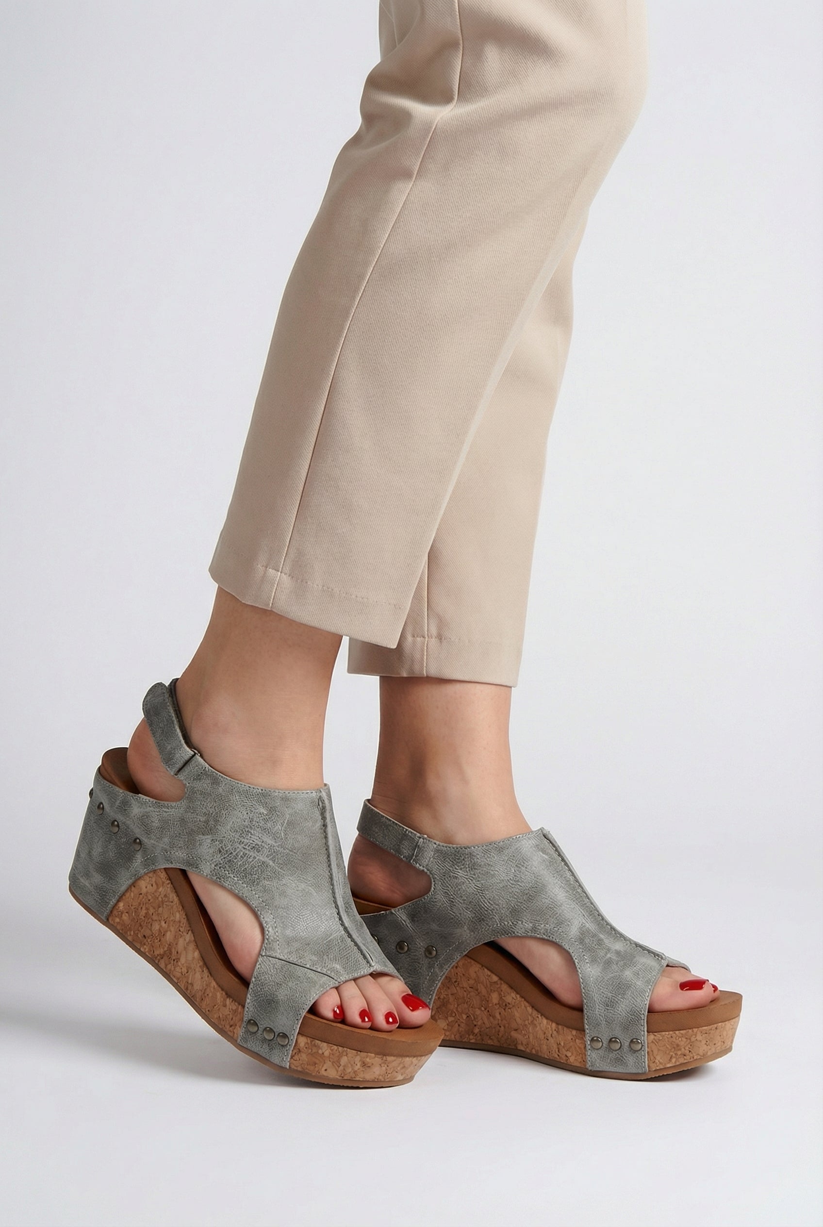 - Cork wedge heel